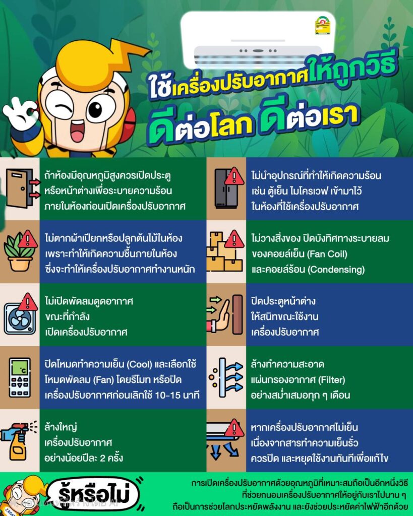 - EGAT Facebook : ใช้เครื่องปรับอากาศให้ถูกวิธี ดีต่อโลก ดีต่อเรา